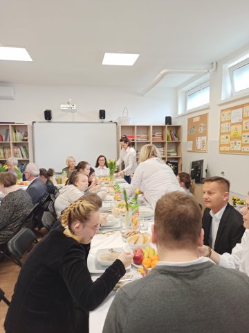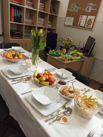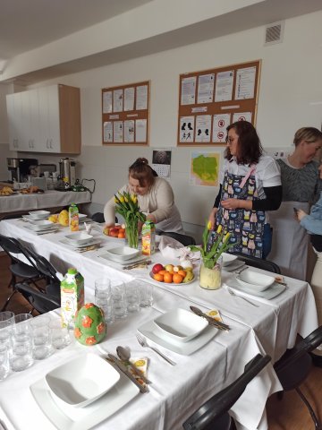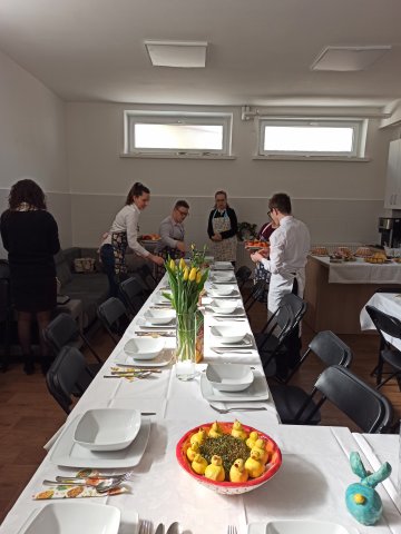 19.04.2023W piątek przed świętami spotkaliśmy się z pracownikami sklepów Auchan Kraków na wspólnie przygotowanym Śniadaniu Wielkanocnym. Wcześniej podzieliliśmy się na dwie grupy, z których jedna przygotowywała stół i potrawy, a druga zajmowała się dekoracjami. Wspólna praca bardzo nas zbliżyła do siebie. Śniadanie Wielkanocne upłynęło w miłej, świątecznej atmosferze, bez pośpiechu, w przyjaznej, serdecznej i spokojnej rozmowie. Nawiązaliśmy bardzo dobry kontakt, który w przyszłości zaowocuje dalszą współpracą.