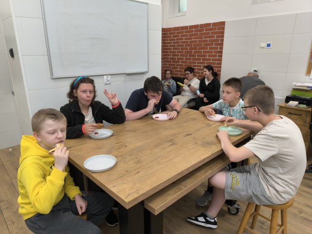 W ubiegły piątek odbyła się gra terenowa. Wyjątkowa, bo będąca elementem naszego szkolnego projektu "Telefon - lepsza strona mocy". Uczniowie wykorzystali telefony komórkowe, by rozwiązać praktyczne zadania - przetłumaczyli słowo z języka angielskiego na polski, wyznaczyli trasę wycieczki z Krakowa do Warszawy, obliczyli skomplikowane działania matematyczne na kalkulatorze, wyszukali domowy trening ogólnorozwojowy w serwisie YouTube, w Wikipedii przeczytali informacje o naszym patronie - Januszu Korczaku. Poradzili sobie świetnie, a cel projektu został osiągnięty - już wiemy, że telefon to wielofunkcyjne i naprawdę przydatne narzędzie. Coraz lepiej umiemy z niego korzystać w bezpieczny sposób. Nagrodą za udział w grze terenowej był wspólny posiłek - przygotowaliśmy i zajadaliśmy ze smakiem tosty. Uczta również była wyjątkowa - środki na sprzęt AGD nasz samorząd uczniowski pozyskał dzięki programowi "Szkolny budżet obywatelski".