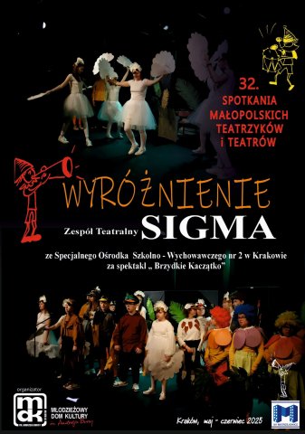 17.06.202510 czerwca odbył się Finał "32 Spotkań Małopolskich Teatrzyków i Teatrów" w MDK im. A. Bursy w Krakowie. Prezentacje konkursowe trwały 3 dni. Spośród 24 zespołów, 10 nominowano do nagród i wyróżnień. Wśród nominowanych znalazł się nasz zespół teatralny ze swoim przedstawieniem pt. "Brzydkie Kaczątko". Nasi artyści zdobyli WYRÓŻNIENIE. Spotkania organizowane są co roku i mają charakter konkursu. Adresowane są do uczniów szkół podstawowych województwa małopolskiego. Celem spotkań jest upowszechnianie twórczych poszukiwań w pracy z amatorskimi zespołami teatralnymi oraz promowanie wyróżniających się grup i nauczycieli. Podczas finału uczniowie obejrzeli trzy najwyżej ocenione spektakle, odebrali dyplomy oraz upominki , a następnie dumni z siebie wrócili do szkoły. Zobaczcie skróconą wersję spektaklu naszej grupy. Scenariusz i muzyka do przedstawienia: Adam Szafraniec, Wydawnictwo "Biała Łódka". FILM