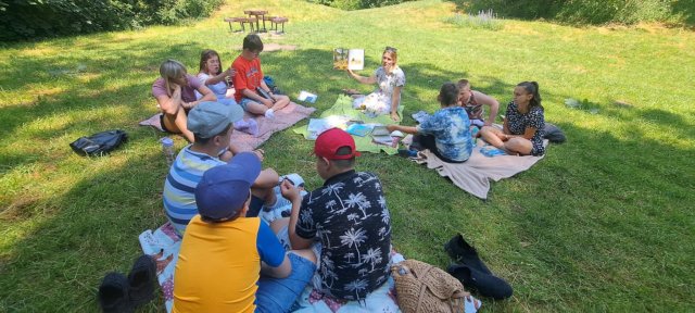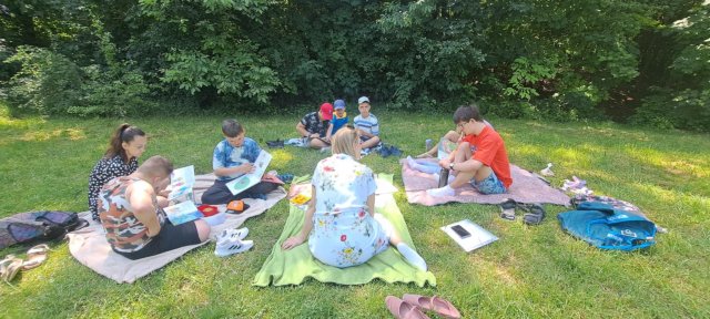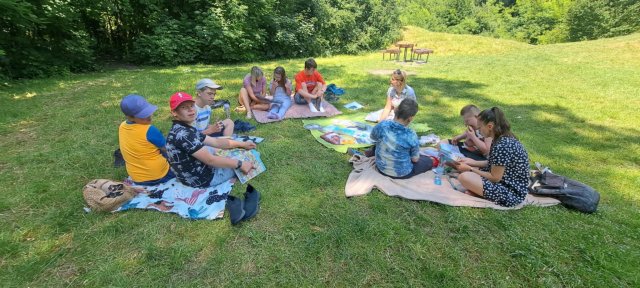 18.06.2025W tym tygodniu nasza szkoła wzięła udział w Międzynarodowej Akcji „Czytanie na Polanie”. W wydarzeniu uczestniczyły aż 4 klasy (4zb,4zd, 5za, 5zb), które wspólnie pokazały, że czytanie to świetna przygoda – zwłaszcza na świeżym powietrzu! Uczniowie mieli okazję pooglądać i poczytać książki, rozłożyli kocyki i zasiedli do wspólnego czytania w cieniu drzew. Nie zabrakło też rozmów o bohaterach literackich, głośnego czytania oraz uśmiechów i relaksu na trawie. To była nie tylko świetna okazja do promocji czytelnictwa, ale też do integracji, odpoczynku i kontaktu z naturą. Dziękujemy wszystkim uczniom i nauczycielom za zaangażowanie!