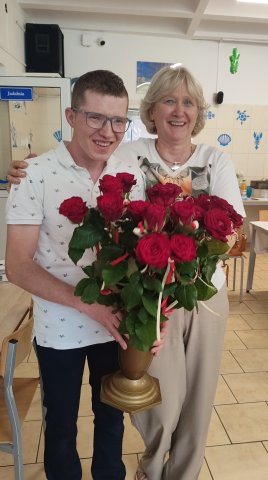 23 czerwca, z ogromnym wzruszeniem, pożegnaliśmy Dawida – wyjątkowego członka naszej internatowej społeczności, który był z nami aż 9 lat! Przez ten czas dał się poznać jako osoba pełna pasji, ciepła i muzycznego talentu. Przez lata wzbogacał nasze życie codzienne i uroczystości internatowe swoim śpiewem, grą na akordeonie oraz syntezatorze.