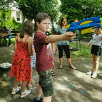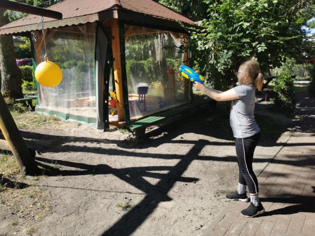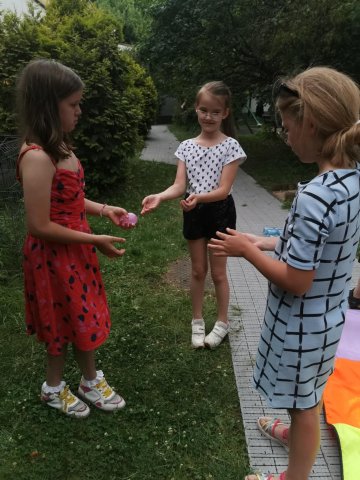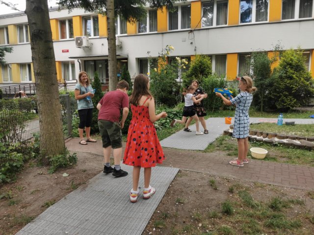 25.06.2025Klasom trzecim trudno żyć bez wody! Dziś nie było zajęć na basenie, ale woda się znalazła, a w zasadzie była głównym bohaterem zabaw ruchowych w ogrodzie. Wspaniale biegać, skakać, ćwiczyć, kiedy można się ochłodzić kropelkami wody! Spróbujcie z rodzicami na wakacjach takich zabaw, które nigdy się nie nudzą. Choć dziś musiały się skończyć, gdy wszystkie wodne balony wystrzeliły gdzieś tam lub gdzieś na kogoś….