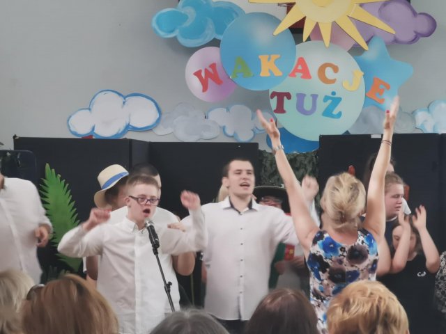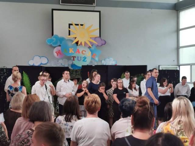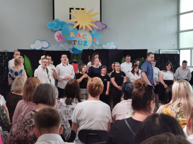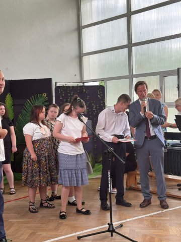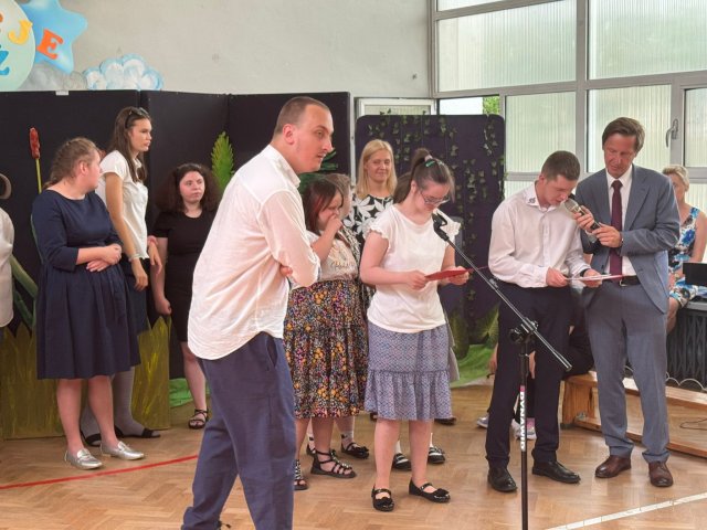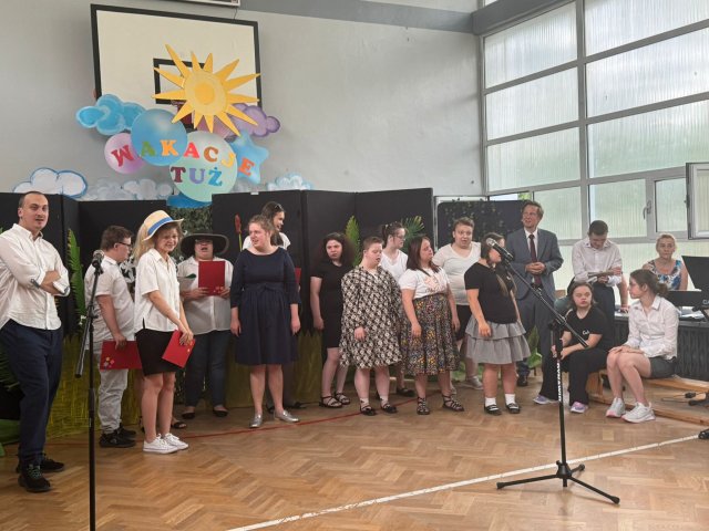27.06.2025Nasi uczniowie właśnie rozwinęli skrzydła i pofrunęli w świat. Skończyły się Akademie kończące rok szkolny. Już tylko ostatnie uściski z wychowawcami, świadectwa, nagrody i nareszcie wakacje! Na pierwszej akademii pożegnaliśmy ósmoklasistów, na drugiej uczniów Szkoły Przysposabiającej do Pracy. Na koniec Pani Dyrektor Aneta Halabowska życzyła wszystkim wspaniałych wakacji. Do zobaczenia we wrześniu!