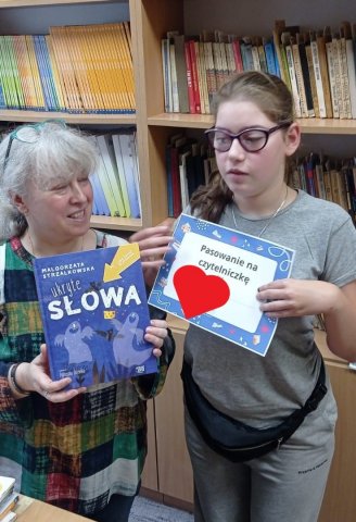 10.09.2025Dzisiaj uczennice z klasy 5zc rozpoczęły udział w projekcie "Podróże czytelnicze - odkrywamy najbliższe środowisko", dzięki któremu Pani Jola z biblioteki z pomocą Pani Małgosi będą starały się pokazać, że wspólne czytanie - w szkole i w domu - może być bardzo przyjemne. Pani Jola z wielkim zaangażowaniem i serdecznym uśmiechem pokazała niektóre tajemnice biblioteki i pasowała dziewczynki na czytelniczki. Mamy nadzieję, że ta wspaniała współpraca da nam dużo radości i pozwoli obserwować i rozumieć świat. Dziękujemy!