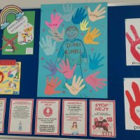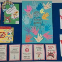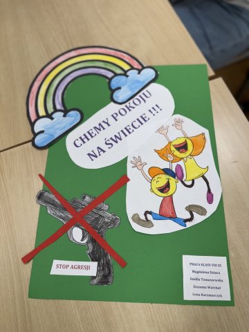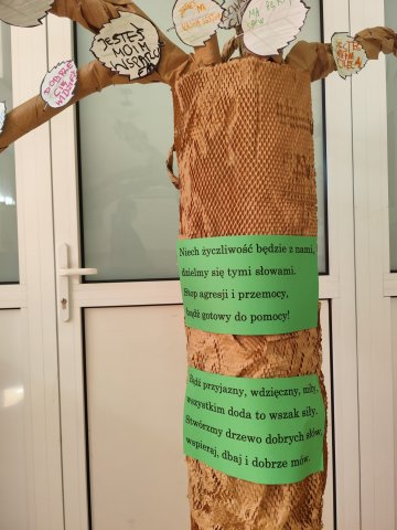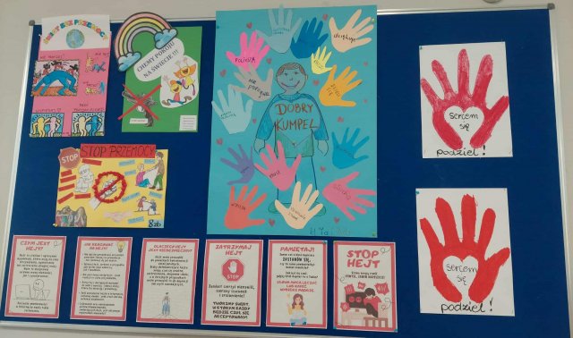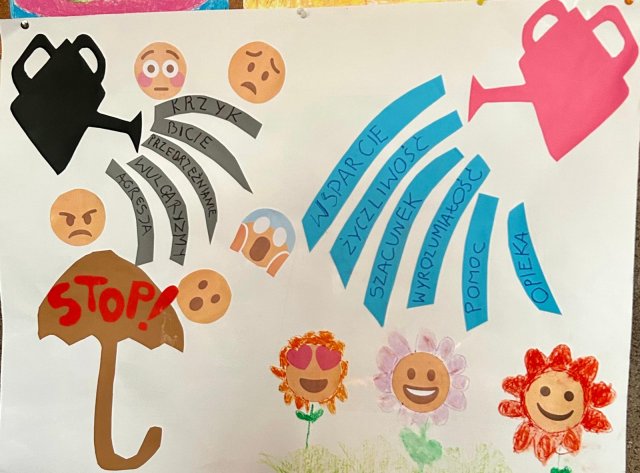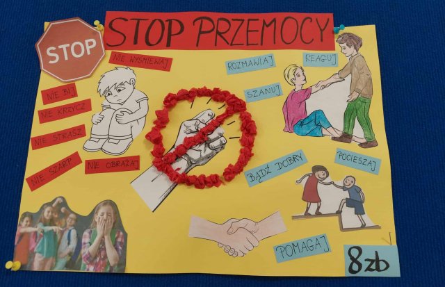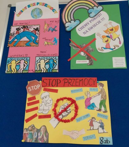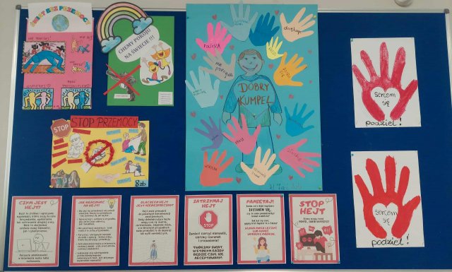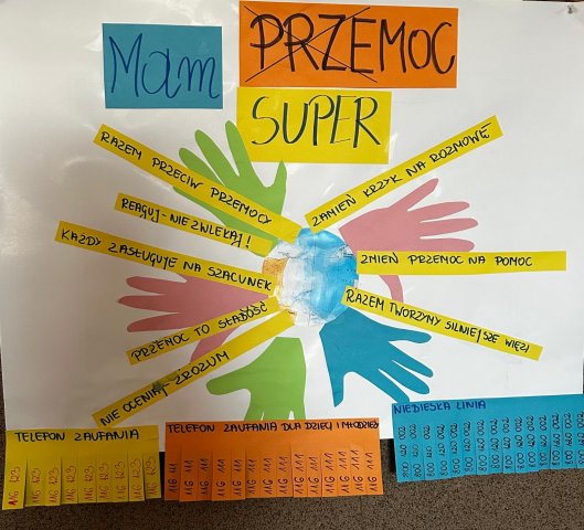 Odbyło się mnóstwo zajęć dostosowanych do wieku i możliwości percepcyjnych naszych wychowanków. Psychologowie i Pedagog szkolny realizowali wraz z uczniami pogadanki oraz warsztaty dotyczące zasad budowania dobrych relacji rówieśniczych, sposobów rozpoznawania i reagowania na agresję oraz konsekwencji zachowań agresywnych. Wychowawcy klas realizowali wraz z uczniami warsztaty i pogadanki zatytułowane: „Mam super moc, reaguję na przemoc”. W zespołach klasowych powstały „Kontrakty dotyczącego przeciwdziałania agresji i przemocy”. Na zajęciach artystycznych uczniowie tworzyli prace plastyczne, muzyczne i ceramiczne; kolaże, mapy myśli, konstrukcje przestrzenne, zabawy ruchowe, zatytułowane: „Pełni mocy bez przemocy – razem malujemy świat bez przemocy”. Na zajęciach sportowych uczniowie realizowali gry zespołowe i zabawy integracyjne. W czasie zajęć świetlicowych uczniowie tworzyli instalacje zatytułowane: „Stop agresji i przemocy – Drzewo dobrych słów”, „Miłe słowa – weź dobre słowo i przekaż dalej”, „Miłe słowo dla Ciebie”. Samorząd Szkolny realizował debaty „Czy przemoc słowna to też przemoc?”.
