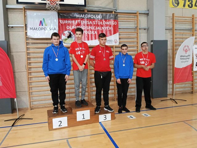 10.10.2025Uczniowie naszej szkoły wystąpili w XXIII Małopolskim Turnieju Tenisa Stołowego Olimpiad Specjalnych. Szczególne gratulacje należą się Marcinowi, który po raz pierwszy wziął udział w zawodach Olimpiad Specjalnych i zajął 1. miejsce w swojej kategorii. Gratulacje należą się również Danielowi i Bolesławowi, którzy w swoich kategoriach zajęli 2. miejsce oraz Dawidowi, który zajął 4. miejsce. Wszystkim zawodnikom gratulujemy wspaniałych startów i medali.