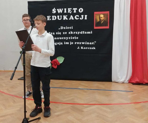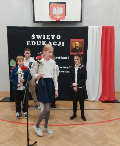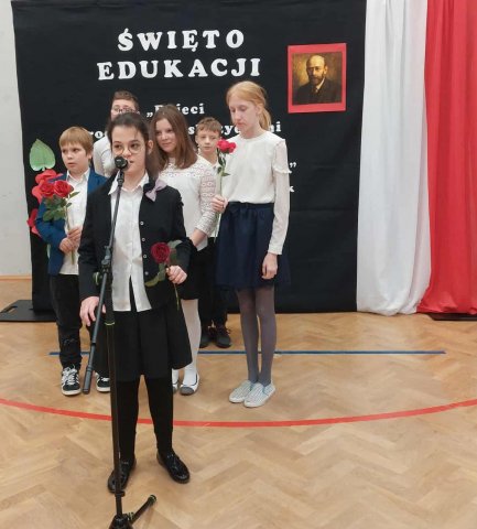 Uroczyste świętowanie Dnia Edukacji rozpoczęła Akademia klas najmłodszych, podczas której, w poczet uczniów wstąpili najmłodsi – Pierwszoklasiści. Akademię rozpoczął występ, który uczcił pamięć naszego Patrona – Janusza Korczaka. W rolę artystów wcielili się Uczniowie klas: 4a, 5a i 6a.