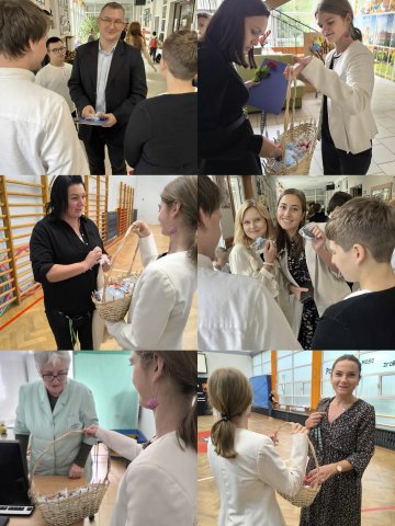14.10.2025W Dniu Edukacji Narodowej przedstawiciele Rady Samorządu Uczniowskiego, wraz z opiekunami, składali najserdeczniejsze życzenia wszystkim pracownikom szkoły. Życzyli uśmiechu, zadowolenia z siebie, energii do pokonywania codziennych wyzwań i niekończących się pokładów cierpliwości.