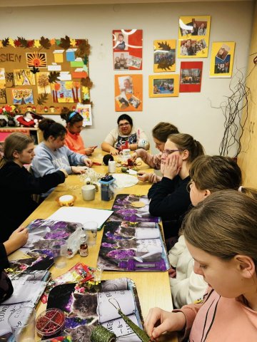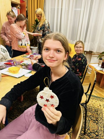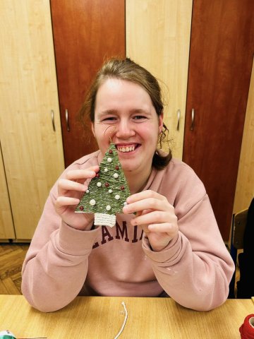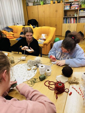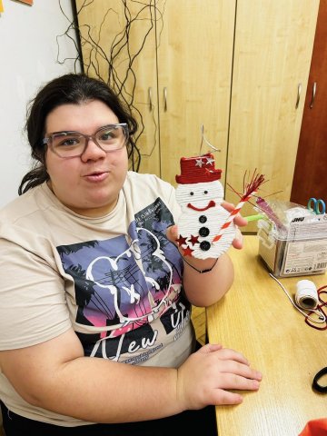 25.11.2025W oczekiwaniu na wizytę Św. Mikołaja wychowankowie internatu postanowili przygotować dla Niego małą niespodziankę – własnoręcznie wykonany upominek. Podczas zajęć plastycznych młodzież stworzyła piękne ozdoby choinkowe ze sznurka: urocze bałwanki, choinki oraz kolorowe bombki. Praca nad dekoracjami była nie tylko okazją do rozwijania kreatywności i zdolności manualnych, ale także do wspólnego spędzenia czasu w miłej, przedświątecznej atmosferze. Teraz z niecierpliwością czekamy na Mikołaja – mamy nadzieję, że nasz prezent sprawi Mu dużo radości!