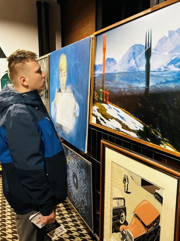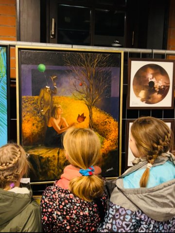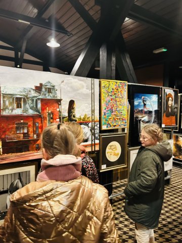 Podziwiając obrazy, mogliśmy nie tylko poznać różnorodne techniki i style artystyczne, ale także zastanowić się nad tym, jak sztuka może realnie zmieniać świat na lepszy. Wizyta była dla naszych wychowanków inspirującym doświadczeniem, które pokazało, że pasja i talent mogą stać się pięknym sposobem niesienia pomocy.