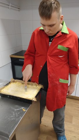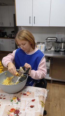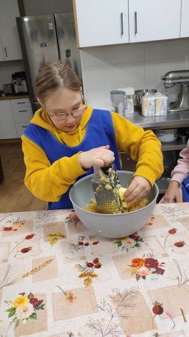 Przygotowanie wypieku okazało się świetną okazją do wspólnej pracy, rozmów i doskonalenia kulinarnych umiejętności. Uczestnicy zajęć zadbali o każdy szczegół, aby efekt był naprawdę wyjątkowy. Szarlotka smakowała wyśmienicie! Czekamy na kolejne kulinarne wyzwania!