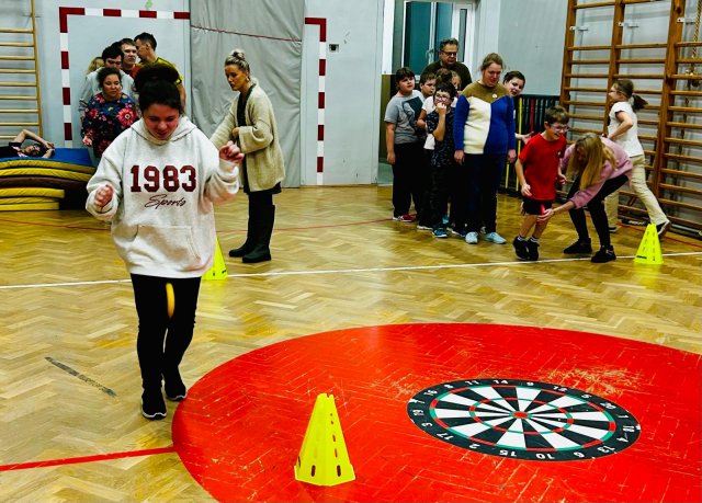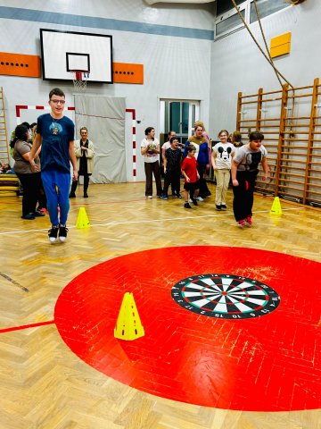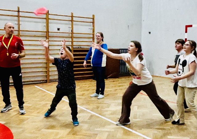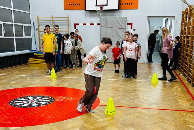 27.11.2025Wspólna zabawa, zdrowa rywalizacja i sportowa atmosfera, czyli kolejna odsłona sportowych zmagań w ramach „Złotej Ligi”. 25 listopada w internacie odbył się Turniej Ringo. Zawody rozpoczęły się od serii konkurencji sprawnościowych z wykorzystaniem ringo. Uczestnicy rywalizowali w zadaniach wymagających koordynacji i precyzji. Każda konkurencja dostarczała mnóstwo emocji, a zawodnicy dawali z siebie wszystko, walcząc o jak najlepszy wynik dla swojej grupy. Po części sprawnościowej przyszedł czas na mecz. Spotkanie było bardzo dynamiczne, pełne sportowej rywalizacji, zaangażowania i dopingu. Zawodnicy zaprezentowali świetne umiejętności oraz ducha fair play. Czekamy na kolejne etapy „Złotej Ligi”!