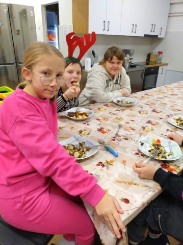 3.12.2025Grudzień już się rozpoczął i świąteczny nastrój powoli wkracza do naszego internatu. Na zajęciach kulinarnych rozpoczęliśmy przygotowania do świąt, ćwicząc przyrządzanie tradycyjnych potraw. Na pierwszy ogień poszły kluski z makiem i bakaliami – wyszły przepyszne!