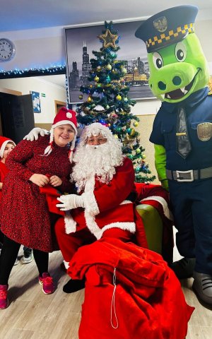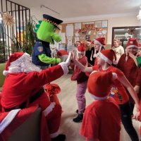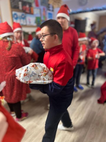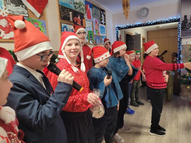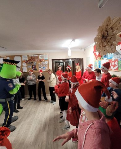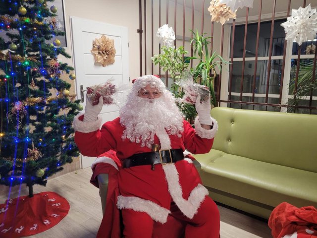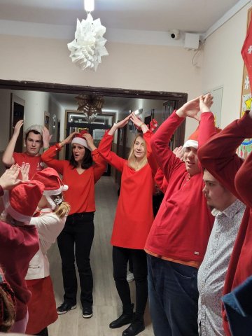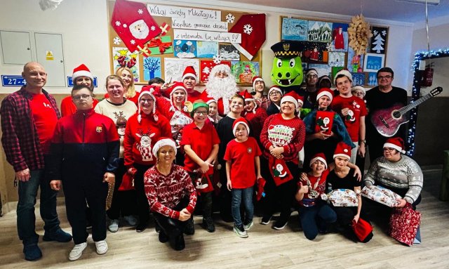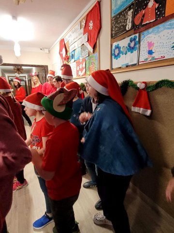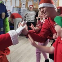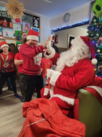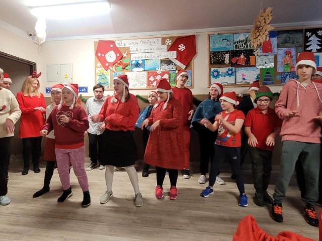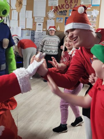 10.12.2025W internacie zapanowała magiczna atmosfera. Tegoroczne mikołajkowe spotkanie rozpoczęliśmy wyjątkową inscenizacją – wychowankowie wcielili się w pracowite skrzaty i z humorem pokazali, jak wyglądają przygotowania do wizyty Świętego Mikołaja. Zaraz potem odwiedzili nas wyjątkowi goście: Święty Mikołaj oraz smok Barbakus przynosząc ze sobą mnóstwo radości, uśmiechów i świątecznej energii. Aby nie było przykro Świętemu, że nikt prezentów nie daje Jemu wychowankowie wręczyli Mikołajowi własnoręcznie przygotowany upominek, dziękując za coroczne odwiedziny. Było również wspólne śpiewanie i taniec.