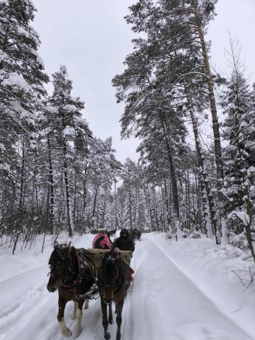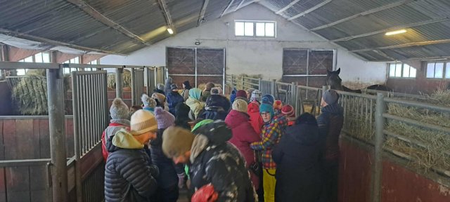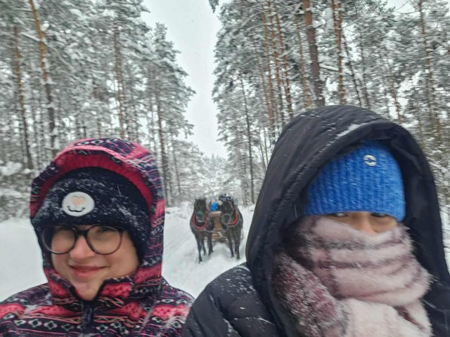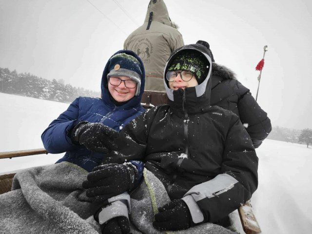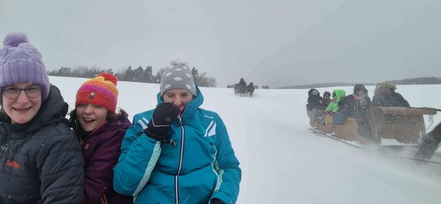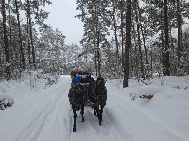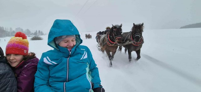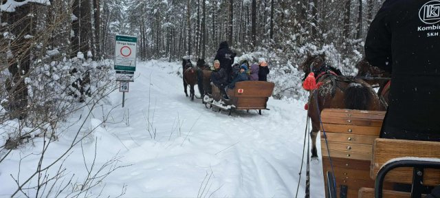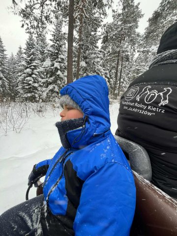14.01.202613.01.2026 r. uczestniczyliśmy w wyjątkowej zimowej wyprawie do Regietowa, podczas której braliśmy udział w tradycyjnej przejażdżce saniami. W wycieczce wzięli udział uczniowie klas 4zb, 5za, 5zb, 5zc, 6za, 6zb, 6zc, 7za, 7zc, 8zc Szkoły Podstawowej oraz uczennice klasy 2AP Szkoły Przysposabiającej do Pracy. Po dotarciu autokarem pod Karczmę w Regietowie zastaliśmy sanie zaprzężone w konie, przygotowane do rozpoczęcia zimowej przejażdżki. Wyruszyliśmy na malowniczą trasę wśród zaśnieżonych krajobrazów, a zimowa aura stworzyła niezwykłą atmosferę – śniegu było bardzo dużo! Pani Zima przywitała nas w całej swojej okazałości. Przejazd saniami dostarczył wszystkim wielu radości i niezapomnianych wrażeń. Po zakończonej przejażdżce uczestniczyliśmy w ognisku w karczmie, gdzie piekliśmy kiełbaski i mogliśmy się ogrzać. Następnie zwiedzaliśmy Stadninę Koni Huculskich „Gładyszów” w Regietowie. Dowiedzieliśmy się, że jest to największa stadnina huculska w Europie, a konie z Regietowa brały udział w znanych produkcjach filmowych, takich jak „Ogniem i mieczem”, „Quo Vadis”, „Szara Baśń” oraz wielu innych. Mieliśmy również okazję zobaczyć salę, w której zgromadzone były liczne medale, puchary i nagrody świadczące o sukcesach stadniny. Wyjazd był niezwykle udany, pełen radości, zimowej magii oraz niezapomnianych chwil, które na długo pozostaną w naszej pamięci.