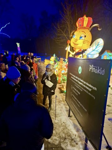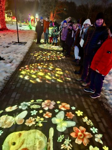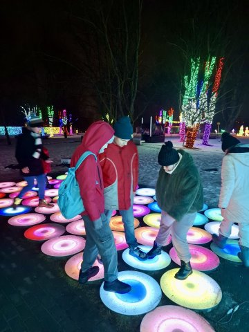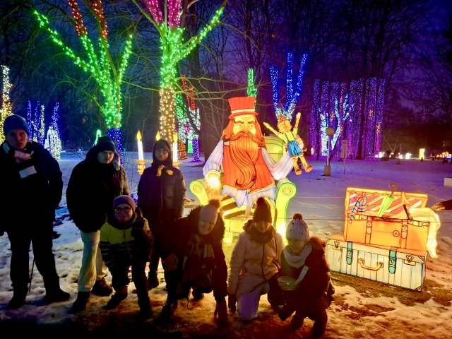 29.01.2026W środowe popołudnie, 28 stycznia, wychowankowie wszystkich grup odwiedzili Ogrody Świateł, a w nich plenerową wystawę z motywem Pinokia. Wśróḍ świetlnych iluminacji wędrowaliśmy przez świat Pinokia poznając jego przygody. Bawiliśmy się w interaktywne gry, pokonaliśmy skomplikowany labirynt oraz przeszliśmy przez pola kwiatów zsynchronizowane z muzyką. Było mroźnie, ale radośnie i czarująco!